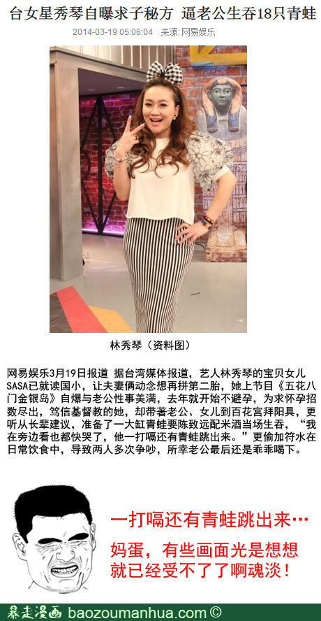 ★台女星秀琴自曝求子秘方 逼老公生吞18只青蛙★